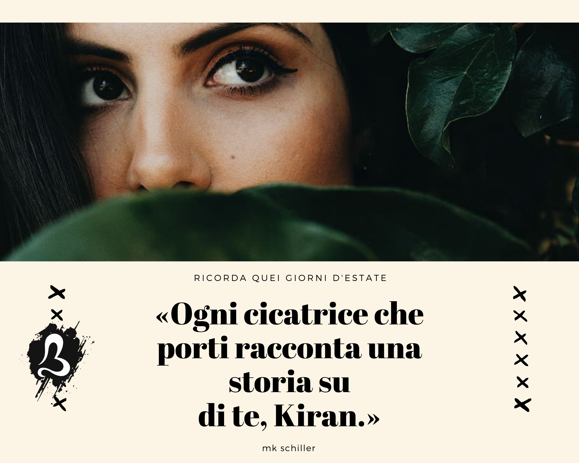 Non conoscendo una parola d’inglese, MK Schiller arriva in America all’età di quattro anni dall’India. Da allora, tutto ciò che ha fatto è raccogliere parole. Dopo aver ricevuto il miglior regalo di sempre dai suoi genitori, la sua tessera personale per la biblioteca, ha iniziato a leggere tutto ciò su cui poteva mettere le sue mani golose di conoscenza. A sedici anni, un’amica le ha chiesto di inventare una storia con il famoso ragazzaccio della scuola. Questa non era una fan fiction … era una fiction di amici. Da quel giorno, sa che vuole diventare una scrittrice. Con l’obiettivo di far ridere e piangere i suoi lettori, MK Schiller ha scritto più di una dozzina di libri, ognuno pieno di personaggi disadattati che superano gli ostacoli e trovano il vero amore.
